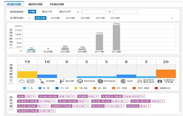 另外就是艾瑞泽5的真实油耗为百公里7~8L,虽然不算特别省油但也说得过去,而且艾瑞泽5作为奇瑞旗下的产品,在质量上一般也不会具有太大问题。质量这一点从车质网的数据也可以看出,最近年款的艾瑞泽5都没收到什么质量问题投诉。
