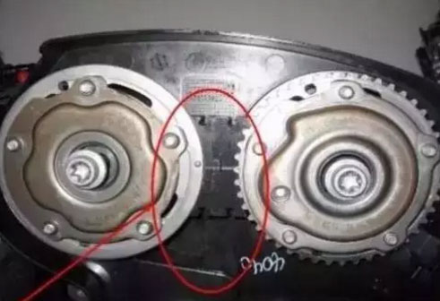 - 如果第一次更换正时皮带,先把曲轴上面的正时小齿轮记号跟机油泵外盖上面的记号对准,再把汽缸盖上面进气和排气的正时齿轮上面的记号对准,进气齿轮上面是一个凸点,排气齿轮上面是一个凹点,把这两个点水平对齐就可以了。
