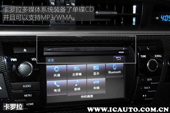 2017款卡罗拉原装导航使用的是先锋汽车导航,价格在4000元左右一台。显示屏主要集成的功能有无线电台播放显示、CD播放显示、车载蓝牙电话系统、导航系统、可显示空调信息以及前后雷达障碍物探测虚拟显示和倒车影像等。虽然屏幕分辨率有些让人失望,背景较为单一,但是功能方面还是比较丰富的。接下来我们来介绍一下卡罗拉多媒体系统的的几大功能。
