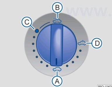 大众新Polo天窗使用说明:在点火开关打开的情况下,旋转此开关可打开或关闭天窗。如果将天窗完全开启,沿顺时针方向将开关继续往B处转动并保持,直至天窗完全开启。倾斜开启-将旋转开关逆时针方向转到目标位置,天窗倾斜开启。在位置D处天窗倾斜角度达到最大。关闭天窗-将开关转到位置A处。