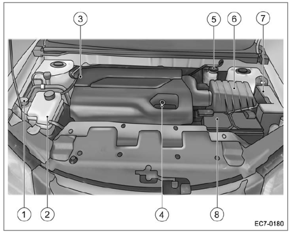 即使是在发动机未运行时,发动机罩 下的发动机电动冷却风扇也可能会起 动并造成伤害。因此,双手、衣物和工具应 远离发动机罩下的电扇。