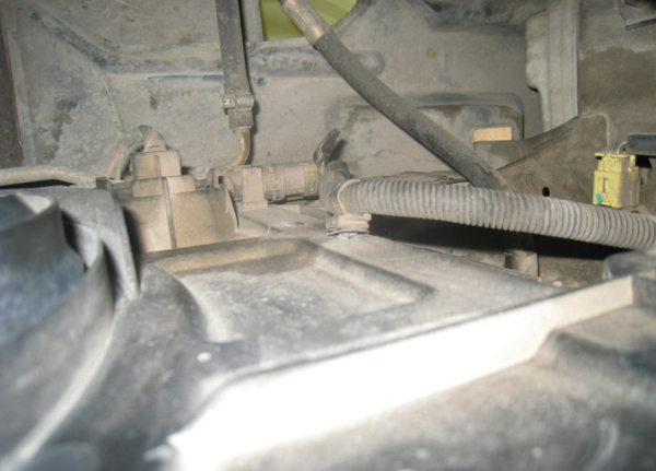 吉利新帝豪水箱放水口在发动机舱驾驶位侧前下位置。如图