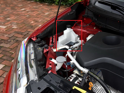 日产奇骏的防冻液储液罐位于发动机的左侧,如图所示。防冻液更换周期为6万公里,更换容量为4L。
