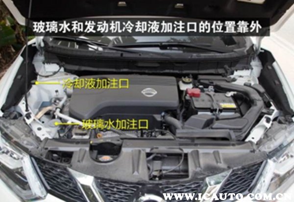 日产奇骏防冻液加注口在发动机舱左侧靠近右前轮减震的位置。建议每40000公里更换一次或2年更换一次,如果汽车停在室外而冷却液中无防冻剂,应排空冷却系统(包括发动机缸体)中的冷却液。开车前应再加足冷却液。