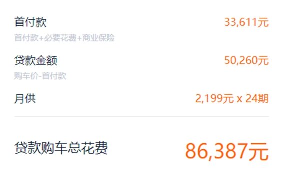 而如果是全款落地价格的话,包括车辆购置税、车辆保险、上牌费以及其它手续费用,全款落地的的价格是94613元,和贷款相比少了3241元,毕竟少了贷款手续费以及后续产生的利息费用。