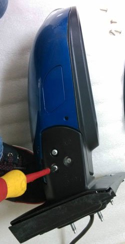 北汽绅宝X25车外后视镜拆卸:用手压镜片根部,使尾部翘起,然后用手抓住尾部,用力往外拔就可以了。然后拔出镜片,拔下加热片的线头。看到里面有4个螺丝,有需要的可以拧出来。下面还有3个螺丝锁住,需要拧下来。