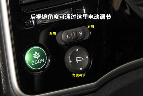 第一,无需用手去调节角度,电动的,本田哥瑞在方向盘左侧有控制按钮,可以调节镜子的角度。第二,镜子可以自动加热,下雨和下雪的时候可以把镜子上面的水珠或积雪烤干,这样就不会影响视线。