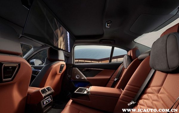 全新宝马i5同样是在宝马5系内饰基础上进行差异化修改,依旧配备双联屏,但换装了三幅式丁字型方向盘,并融入环抱式交互灯带以及流金饰板。与此同时,新车还针对后排进行了升级,配备来自宝马7系的同款8K后排显示屏、四区独立空调、Bowers & Wilkins音响等高阶豪华配置。