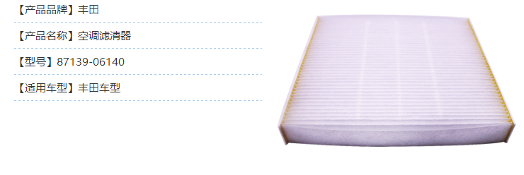 丰田凯美瑞空调滤芯的价格大概在100块左右;丰田凯美瑞空调滤芯的型号是:87139-06140。
