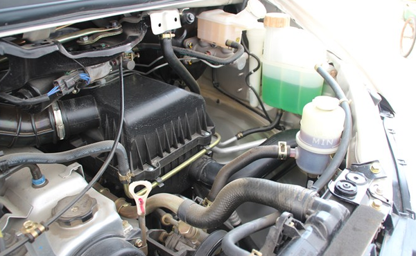 首先要打开风行菱智引擎盖开关,水箱在右侧。