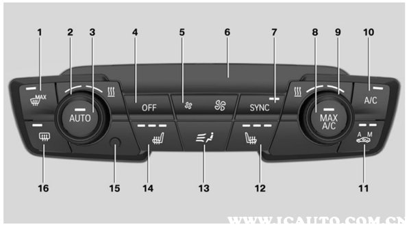 宝马x1空调暖风开启可将右侧旋钮顺时针旋转即可调节出风口温度,开启暖风模式。按钮A/C是空调压缩机开关,按下时指示灯亮起,压缩机开始工作制冷,出风口开始出冷风。