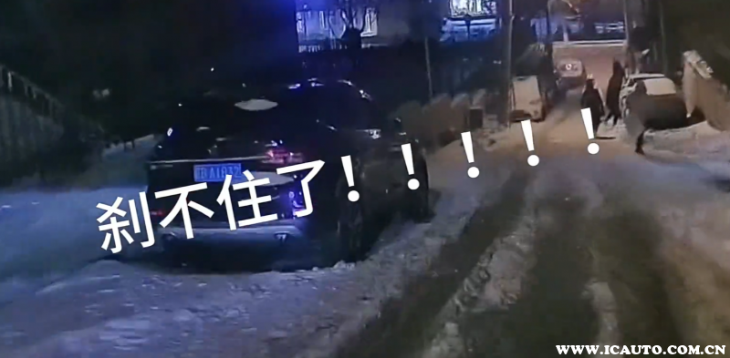 雪后私家车刹车无效顺滑下坡