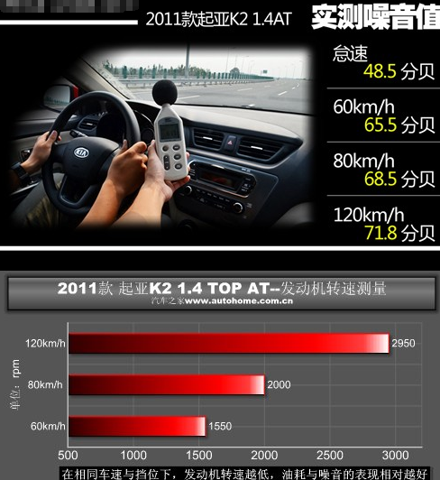 以下是起亚k2噪音测试:
