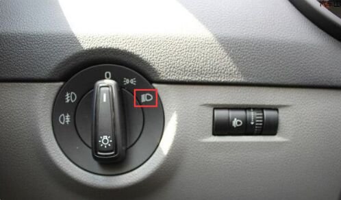 首先,将方向盘左侧的大灯旋钮旋转到图示红色位置打开大灯,也就是打开了近光灯
