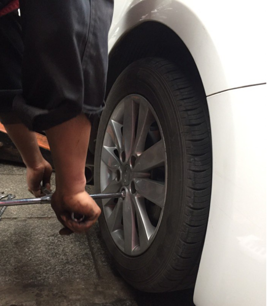 5.将刹车卡钳装回去,卡钳螺丝拧至要求的扭矩。将轮胎装回去,轮毂螺丝稍微拧紧。