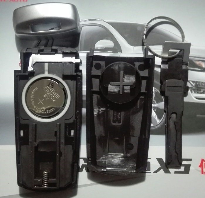 然后将钥匙掰开就可以看到电池了,拆除电池更换就可以了。如下图所示。