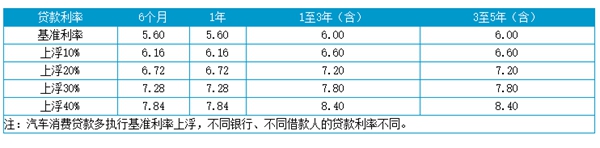 关于车贷利息一般是多少的问题,其实不同银行的车贷利息计算方式是不同的,但基本都是在央行贷款基准利率上浮动执行,而基准利率为: