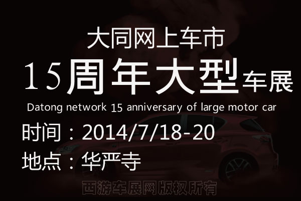 大同网上车市15周年大型车展时间:2014年7月18日至20日
