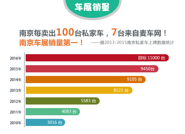 麦车网南京奥体车展作为麦车网旗下城市销售型车展的著名品牌,自2009年启程,至今已举办了五十五届,成功帮助近四万余户家庭实现了有车梦想,展会总销量同城遥遥领先!“买车就上麦车网!”成为千万车友的购车指南!南京每卖出100台私家车,7台来自麦车网!