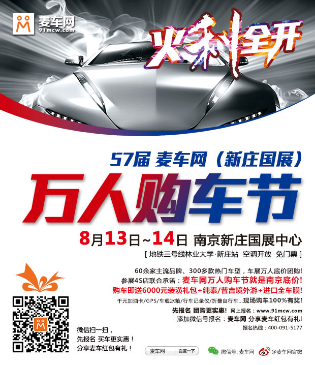 57届麦车网(南京)新庄国展万人购车节火热报名!