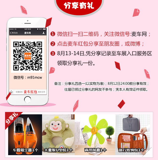 答:除了4S店的购车优惠,麦车网提供了价值五十万“购车惊喜大抽奖”,现场购车100%中奖!现场凭购车合同、订金收据即可至服务区领取。本活动杜绝一切虚假行为,活动结束后将进行中奖名单公示,敬请关注!