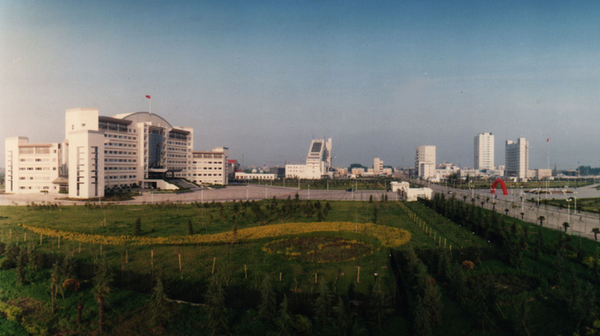 在国旗广场南侧,是全市最大的彩色灯光程控喷泉池,每逢节日夜晚,喷泉池喷射出绚丽多彩的水柱和水花,与广场上的36盏庭院灯和广场绿地上320盏草坪灯以及色彩斑斓的各式彩灯交相辉映,为新区的夜晚增添了喜庆气氛。