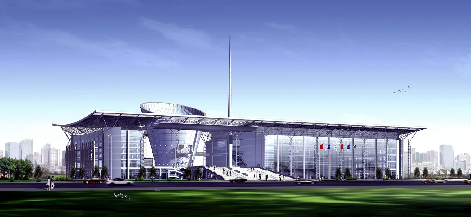 【温州车展】 温州国际会议展览中心2001年7月开始施工,2002年10月竣工投入使用。总占地面积达58万平方米。其中一期工程建筑占地2万平方米,建筑面积72650平方米,广场面积10万平方米;其建筑设计划分为展厅、会议中心、酒店三大区域。三号展厅9600平方米,四号展厅6000平方米。倒锥形会议中心冲破屋顶,结合大平台、时光塔构成“没有顶盖的中庭”,创造了鲜明的空间感、方向感。中庭布置了自动扶梯、观光电梯、空中走廊、电子大屏幕、景观水池、T型表演台、大尺度生态植物,形成独具特色的“立体广场”空间,鲜明表示这就是“温州标志性的建筑”。