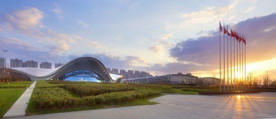 主展馆:成三品桁架组成。顶部弧线流畅、简约,形成内部起伏的建筑空间。立面部分形成三段式设置,底座为石材,和上部的铝板效果由中部玻璃分断,材质多样而块面化,形成良好的视觉效果,它占地面积23000㎡,可搭建1265个标准展位,净高15-18米,南北向设置人流出入口。同时,我们拥有10个标准馆,标准馆面积均为10000㎡,可搭建550个标准展位,净高15-18米,南北向设置人流出入口。
