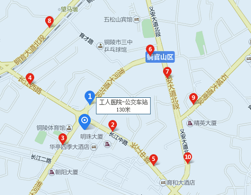 铜官山区法院[公交车站]: 10路16路22路1路4路 720米