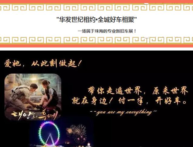 【珠海车展】也许你已经感觉的到:在浪漫之城的珠海,除了每年的房车联展外,很难再找到好的车展。 也许你已经感觉的到:珠海作为经济特区,在这个跨时代的发展下,珠海的战略中心也逐步转移,随着建立城内各项交通通道、珠中同城、省内省外高速连接、港珠澳大桥等的交通配套呈现,珠海已逐渐被世人所知,东方的璀璨明珠,亦傲视全球!