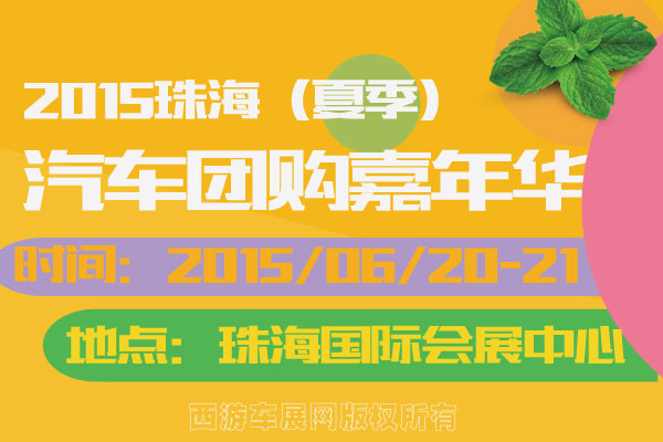 【珠海车展】6月20日--6月21日,“2015珠海(夏季)汽车团购嘉年华”将在珠海国际会展中心隆重开幕,活动由珠海广播电视台主办,网上车市、珠海华发国际会展管理有限公司承办,支持单位为广州展联展览服务有限公司。