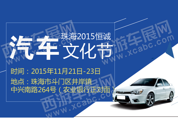 【珠海车展】2015恒诚首届汽车文化节将于11月21至23日在珠海市斗门区井岸镇中兴南路264号隆重举行。