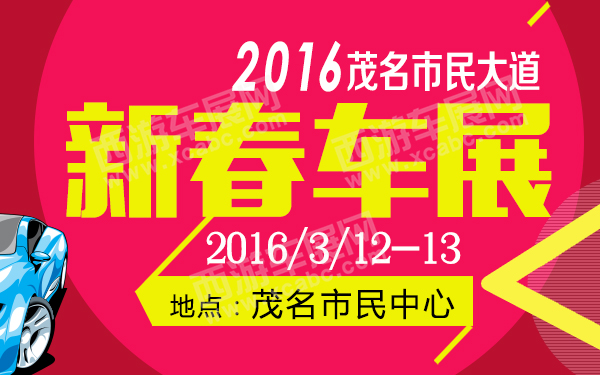 【茂名车展】2016新春车展,由茂名日报社、茂名市汽车行业协会联合主办, 中国人民财产保险股份有限公司茂名市分公司协办,于3月12日至13日在茂名市民大道市民中心隆重举行, 将汇聚三十多个主流品牌、上百款热销车型,本次车展是历届品牌最齐全、阵容最强大的一个汽车盛会,参展品牌有:奥迪、宝马、北京现代、雪佛兰、猎豹、郑州日产、进达名车中心、东风日产、长城汽车、长安马自达、长安汽车、奇瑞汽车、北汽幻速、吉利汽车、力帆汽车、广汽丰田、广汽本田、上海大众、一汽丰田、东风本田、一汽大众、东风标致、东风雪铁龙、福特、江铃汽车、东风悦达起亚、广汽三菱、广汽菲克、广汽传祺、东风裕隆纳智捷 、凯翼汽车 等一站式购车,免去您东奔西跑的烦恼。本次车展不仅是一年新春的气温回暖,更是车市开年的第一次大发力。