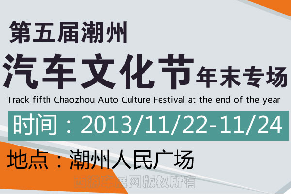 【潮州车展】11月22日——11月24日,由潮州市经信局、潮州市广播电视台主办,潮州电广传媒广告有限公司承办的第五届潮州汽车文化节年末专场(简称潮州车展)将在潮州人民广场举行。本次参展的品牌和车型是历届最多的一次,一共26个展位32个品牌,接近200款车型参展。