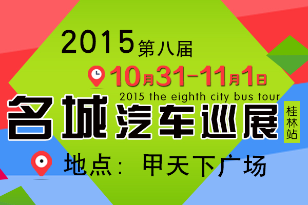 【桂林车展】2015第八届名城汽车巡展将于10月份进驻广西,第三站桂林车展将于10月31日在江南公园隆重开幕。