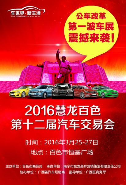 【百色车展】2016慧龙百色第十二届汽车交易博览会于3月25-27日在百色市恒基广场隆重举行, 现场20多种品牌,80多款车型,欢迎前来选购,南宁慧龙展业。