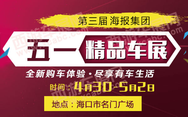 【海口车展】4月30日—5月2日,由海南日报报业集团主办、南国都市报与南海网联合承办的第三届海报集团(周末购)五一精品车展暨公务员车改专场推介会将在海口名门广场举行,海口车市将迎来猴年入夏后首次购车潮。
