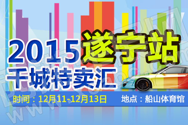 【遂宁车展】12月11日-13日,由中国最大的汽车移动电商平台“掌上买车APP 千城特卖汇O2O周末车展组委会”和中国最大的车友社交平台“天天汽车APP”主办并由遂宁人民广播电台、一猫汽车网、汽车公社、华龙网、矩阵式自媒体汽研社等媒体全程支持的千城特卖汇将于12月11日-13日在遂宁船山体育场隆重开幕,让消费者在观车、品车、买车的同时,能够享受到最多、最大的购车实惠!千城特卖汇一直没有停下自己的步伐,这次回归四川,将再次掀起O2O购车热潮。