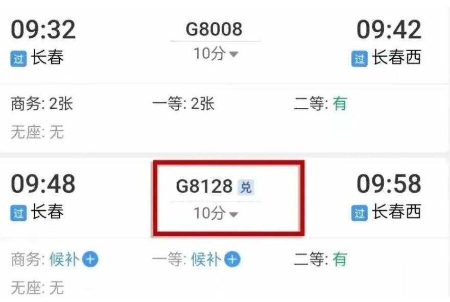 3、添加完成以后返回到首页面,再去选择出发日期、起点和终点,点击查询后就可以看到很多满足要求的列车。对于有兑字的列车,也就意味着支持积分兑换的。
