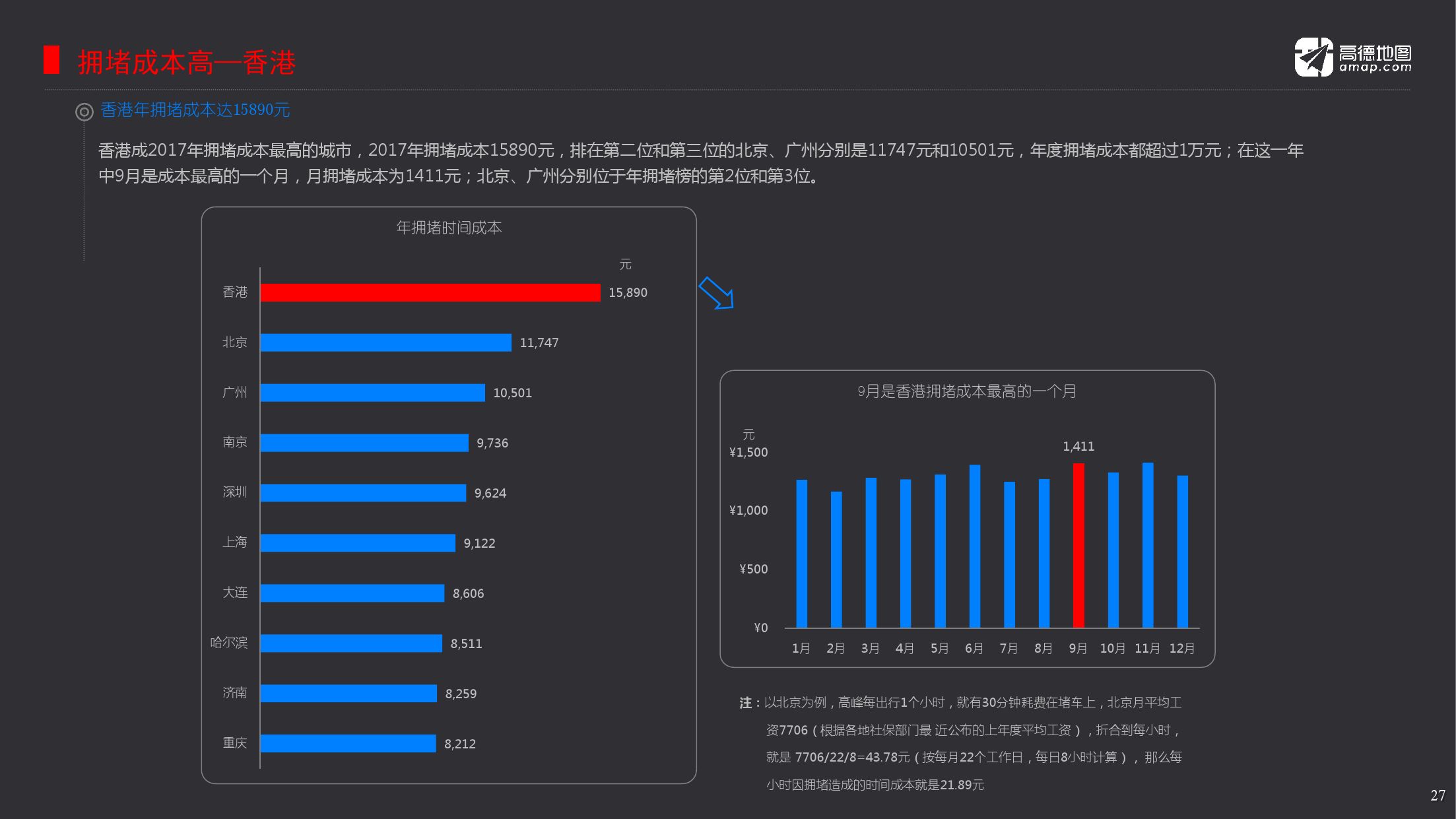 拥堵别以为没有成本,时间,油费等等加起来都是成本,而拥堵成本最高的当属香港,排第二和第三分别是北京和广州。以北京为例,每小时的拥堵成本为21.89元。