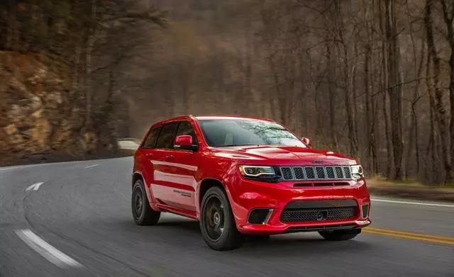 大切诺基Trackhawk,心脏是一台6.2L V8机械增压发动机,最大马力717匹,最大扭矩875牛米,加速时间仅有3.7秒,曾经也是世界上最快的SUV。