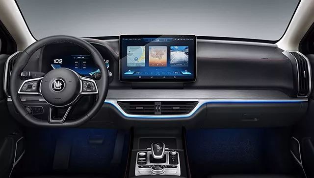 全新一代唐的外观上一直贯彻着一个重要的理念——悬浮,让整车显得年轻灵动。同样,我们从官图中也能看出这种“悬浮”效果。整个中控平台中,实体按键可以说是精简到极致,车身系统操作只需通过一个可 90° 旋转的触摸悬浮中控屏完成,各项功能尽在指尖掌握,这一点有些特斯拉设计风格,也成为未来造车的趋势。