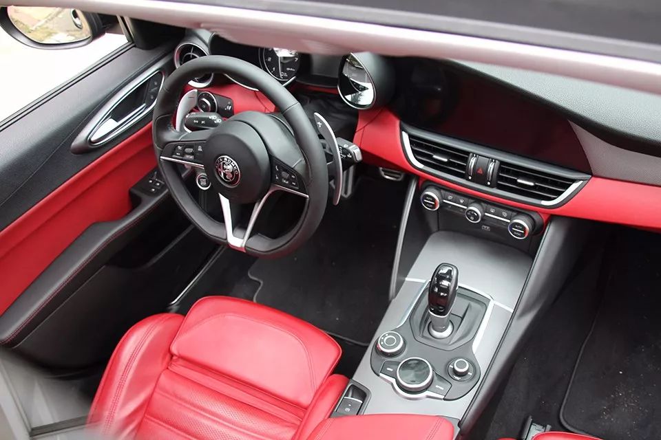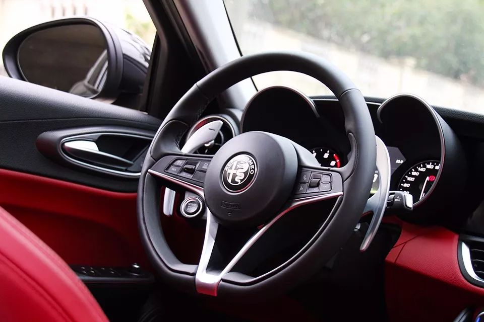 当我坐进Giulia的那一刻,是红黑内饰带来的强烈运动感。