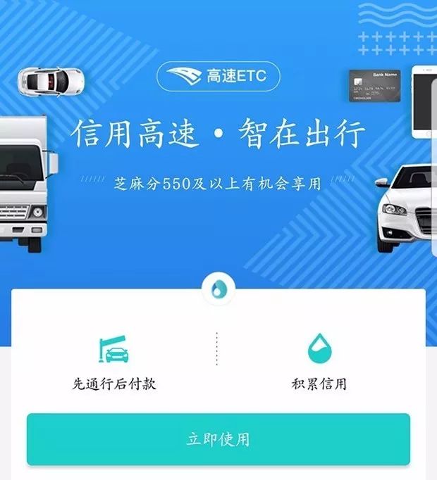 先谈谈支付宝“车牌付”使用方法,首先支付宝账户信用分550分以上,即可直接把车与支付宝账户绑定,你的车就变成了支付宝,车牌就变成了付款码。开通方法也很简单,只需点击“芝麻信用”-“出行”-“高速ETC”,即可看到“车牌付”功能。