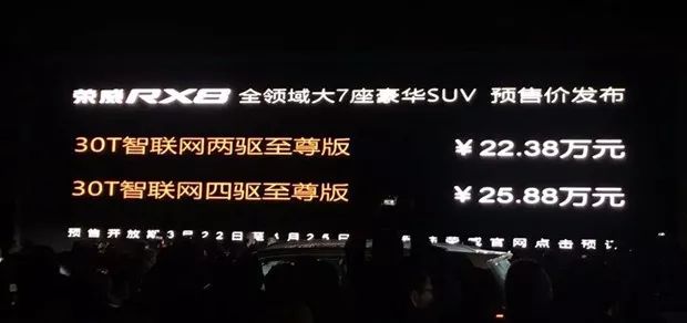 近日,上汽集团官方正式公布了荣威RX8车型的预售价,此次开启预售的车型共有2款车型,其预售价区间分别为22.38和25.88万元。同时,新车将于4月26日正式上市销售。国产SUV敢卖到25万区间??不少网友都对其定价产生了质疑,下面我们看看荣威RX8高价的底气是什么。