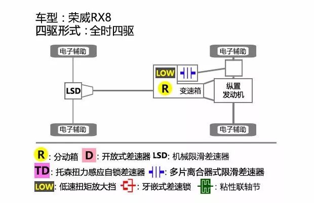 其次,荣威RX8四驱系统为ALL-DRIVE智能全领域驾驶系统,可提供智能、运动、雪地、越野、高速两驱、低速四驱扭矩放大共6种模式,其中低速四驱扭矩可放大2.48倍,在扭矩放大倍数上荣威RX8与最大对手哈弗H9是相同的,并带有中央差速锁和后桥差速锁。