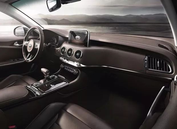 不仅外观设计时尚优雅,内饰也极具精致奢华,Stinger在保留家族设计风格的同时,引用了飞机驾驶舱元素,涡轮造型圆形出风口和机翼状控制面板的设计,别具动感与活力,运动氛围强烈。
