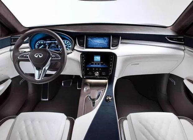 作为日产豪华品牌,英菲尼迪的内饰豪华感传承了日系的经典风格,大量的米白色搭配,看上去十分温馨,细节之处的金属饰条装饰和皮质包裹也尽显豪华,此外中央上下分屏设计给人极强的科技感。