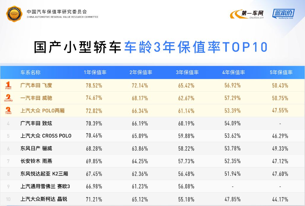 整体来看,小型轿车型中,日系合资产品优势明显,能与其竞争的车型较少,保值率优势明显。