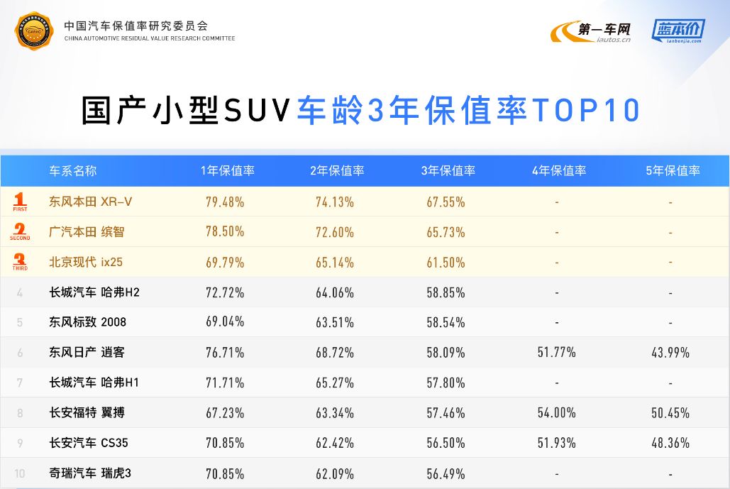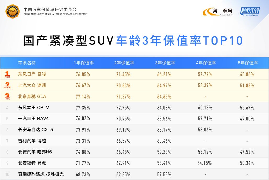 紧凑型SUV是目前汽车市场中销售稳定且需求旺盛的细分市场,保值率水平整体较高。
